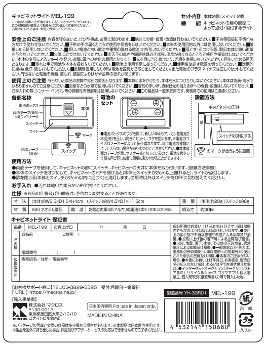 ●両面テープ接着の乾電池式なので設置場所を選びません