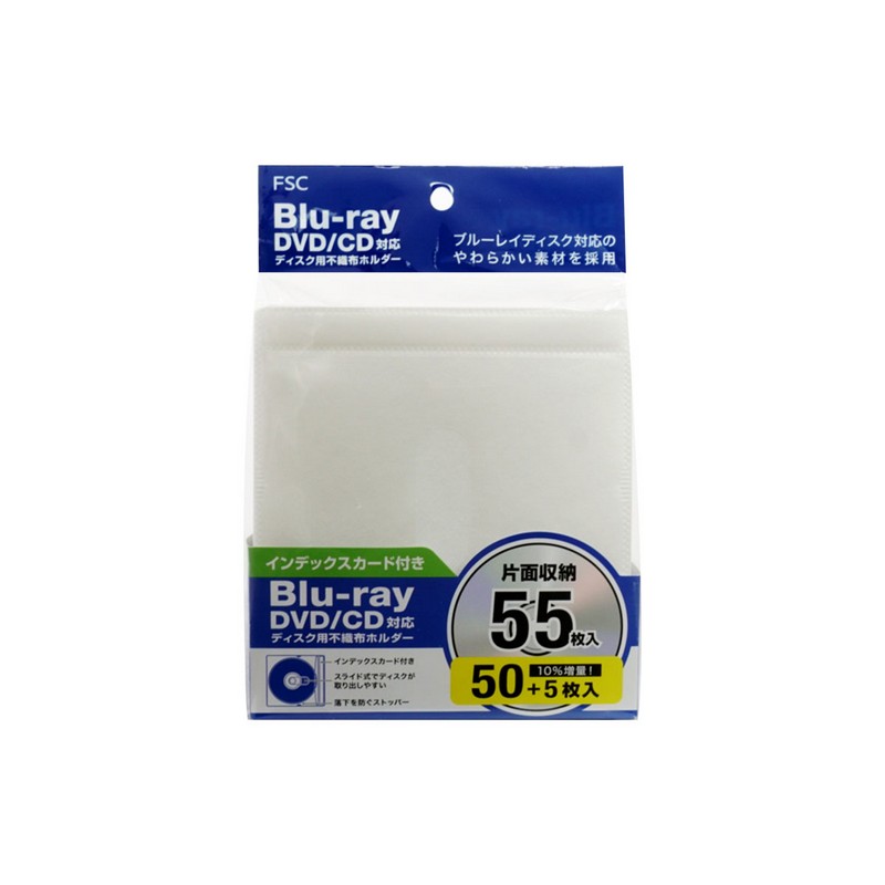 FSC Blu-ray DVD CD対応 ディスク用不織布ホルダー 55枚 FS-NFBDIS55-WH