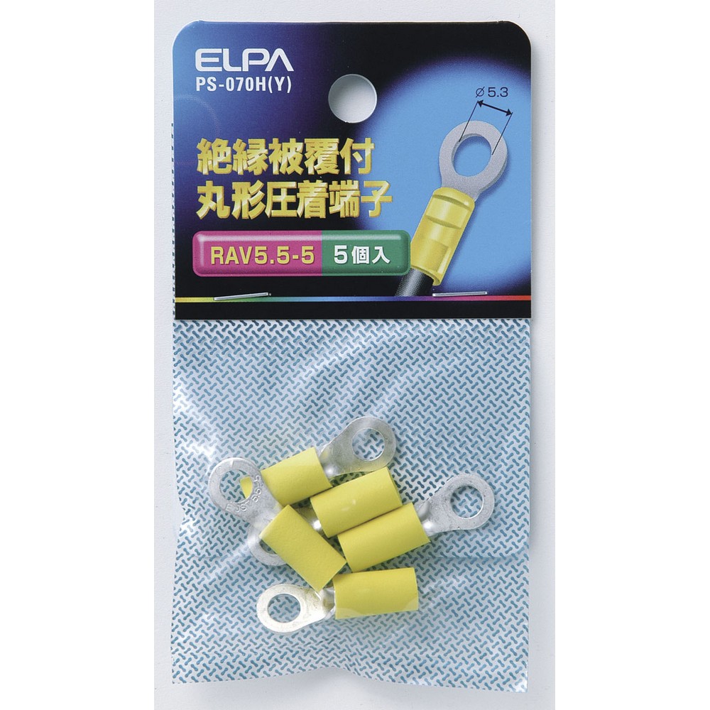 エルパ 絶縁被覆付丸型圧着端子 RAV5.5-5 イエロー PS-070H(Y)