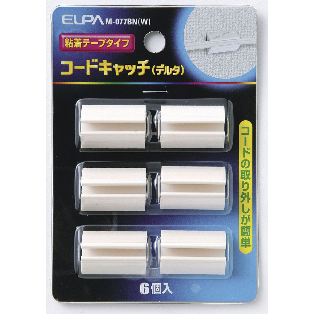エルパ コードキャッチ 粘着テープタイプ ホワイト 6個入 M-077BN (W)