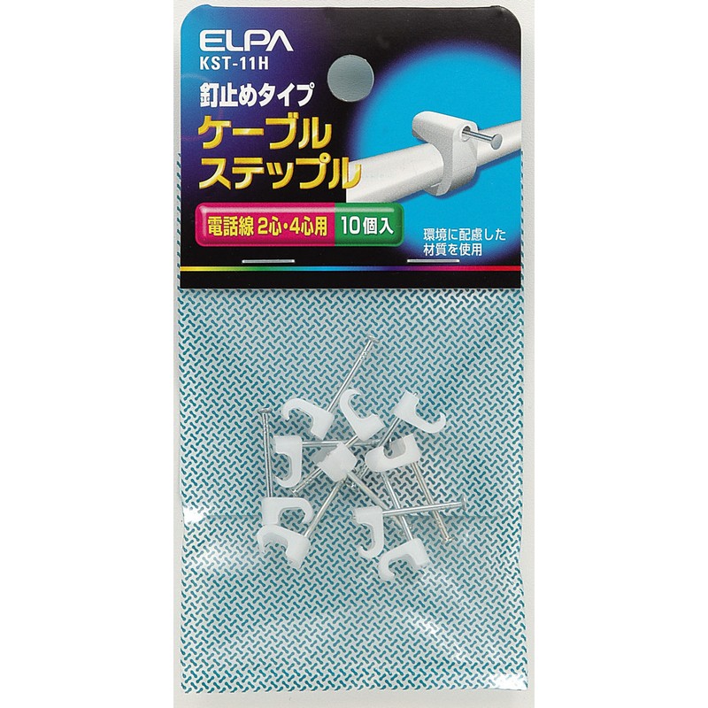 【販売終了】エルパ(ELPA) ケーブルステップル釘止めタイプ 電話線2心 4心用 10個入 KST-11H