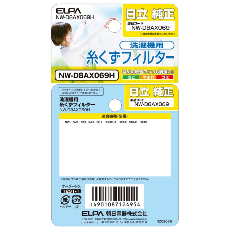 エルパ(ELPA) 糸くずフィルター 日立洗濯機用 NW-D8AX069 純正品 1個入り NW-D8AX069H