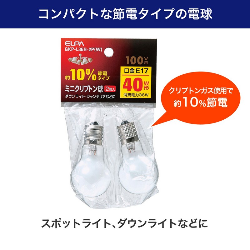 ●アルゴンガスよりも熱伝導率の低いクリプトンガスの封入で長寿命を実現した電球です。外径のコンパクト化によってスポットライト、ダウンライトなど幅広く使用できます。
