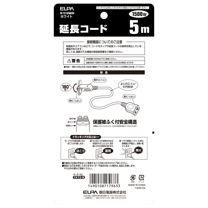 エルパ(ELPA) 延長コード コード長 5m スイングプラグ W-1515NB(W)