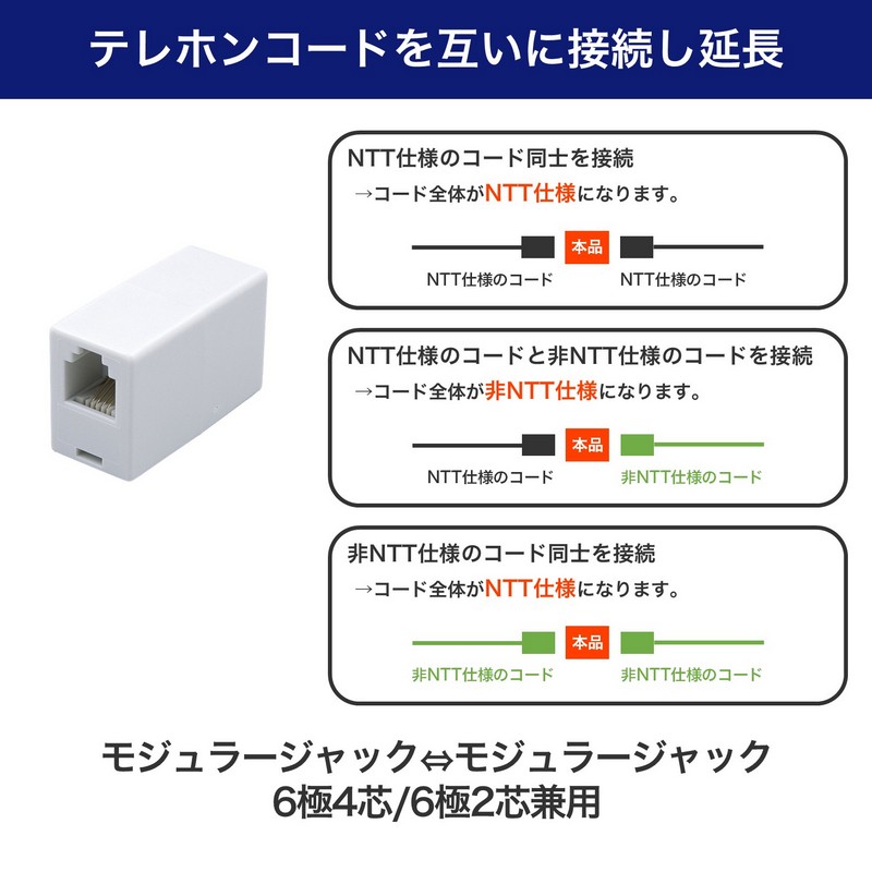 ※NTT仕様のコード同士を接続→NTT仕様コード