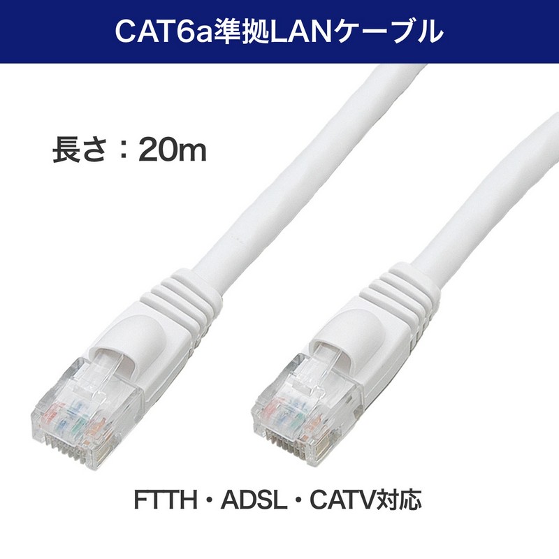 エルパ LANケーブル CAT6a 20m LAN-A620 (W) /カテゴリ6a準拠 8極8芯用