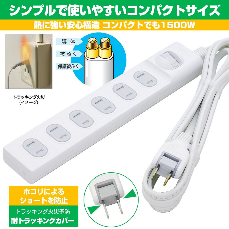 ●ボディにはABS樹脂、差込口・ボディ内部にはトラッキングに強いユリア樹脂を採用し、熱に強い構造です。