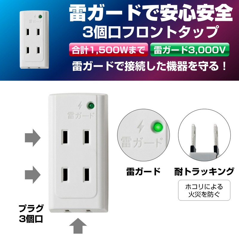 ●電源ラインサージ低減・・・内蔵されたサージ低減素子(バリスタ)が雷および開閉サージを低減し接続された機器を守ります。