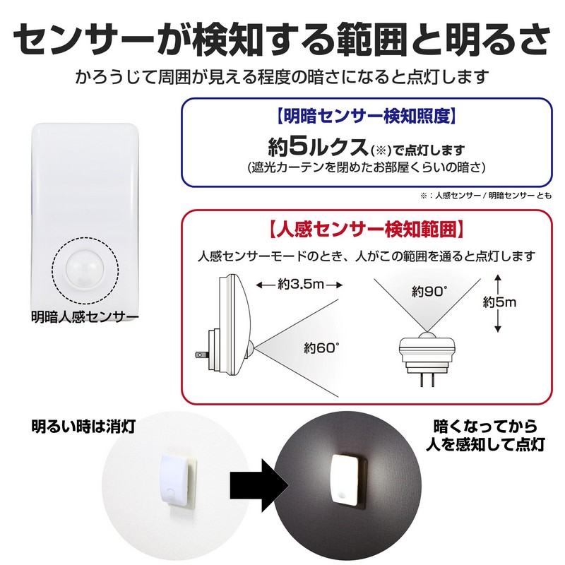 ■点灯保持時間:約2分(人を検知すると自動で点灯し、約2分後に自動で消灯します)