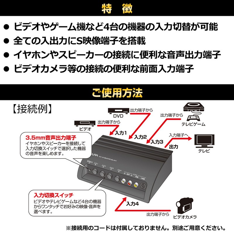 ●ビデオやテレビゲーム機など4台の機器の入力切換が可能