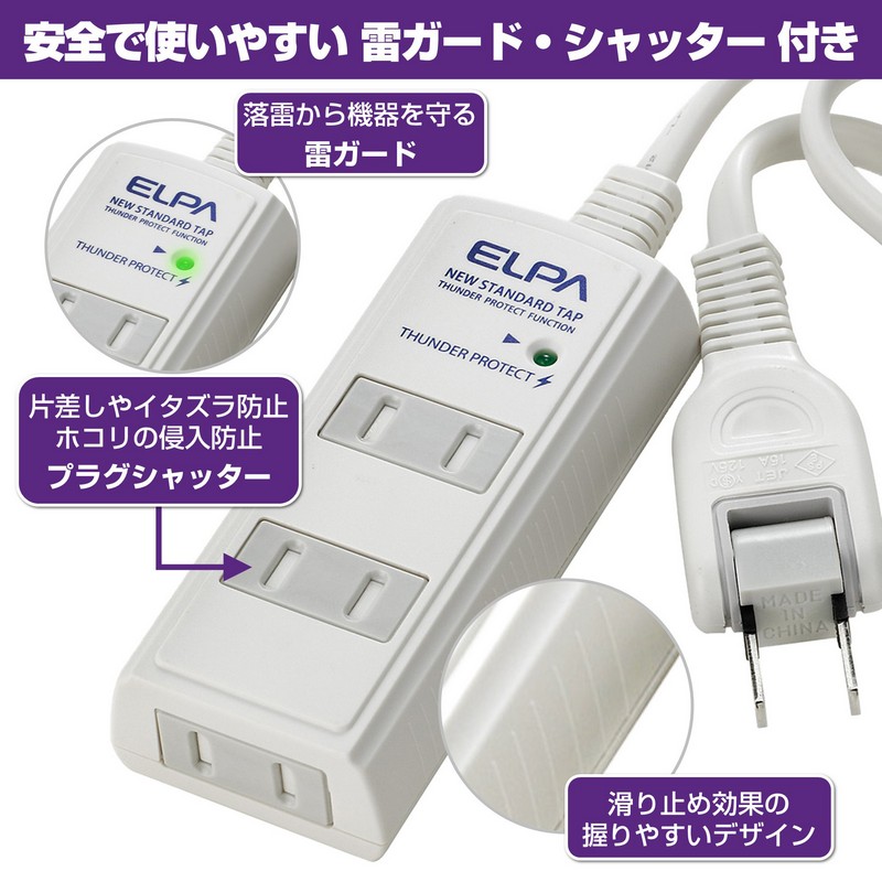 ●電源ラインサージ低減…内蔵されたサージ低減素子(バリスタ)が雷および開閉サージを低減し接続された機器を守ります。