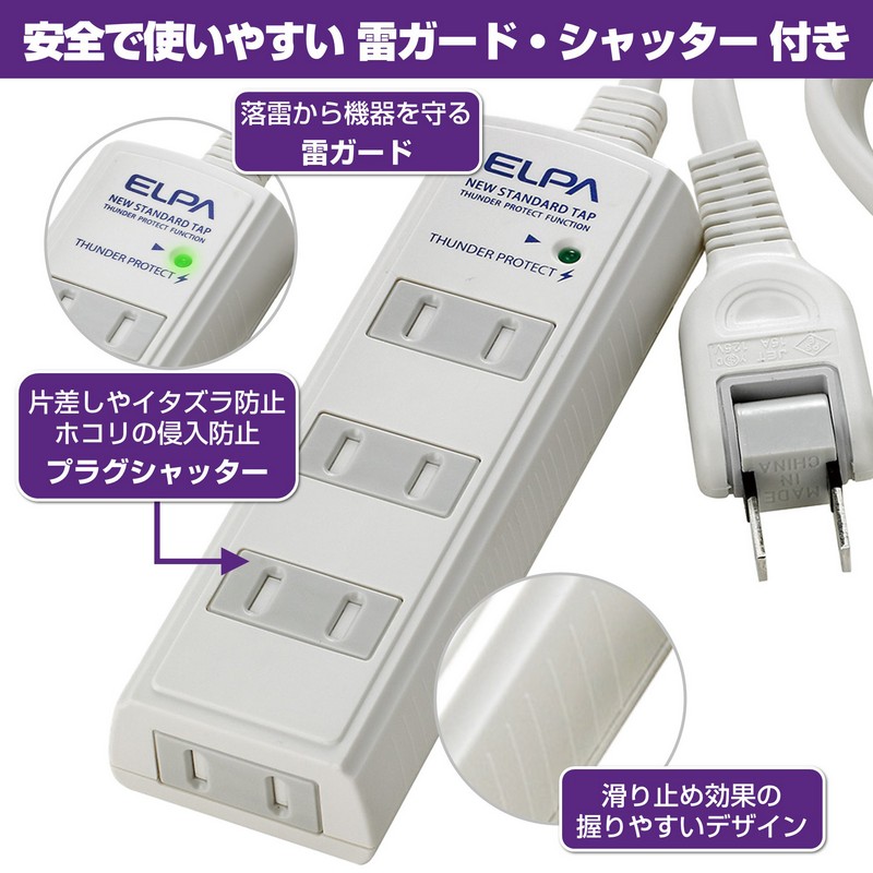 ●電源ラインサージ低減…内蔵されたサージ低減素子(バリスタ)が雷および開閉サージを低減し接続された機器を守ります。