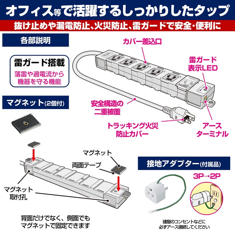 ●電源ラインサージ低減…内蔵されたサージ低減素子(バリスタ)が雷および
