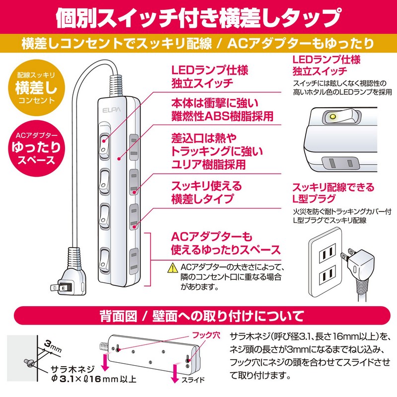 ●スッキリ配線できるL型プラグ