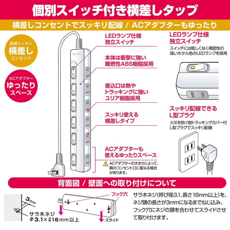 ●本体は衝撃に強い 難燃性ABS樹脂採用