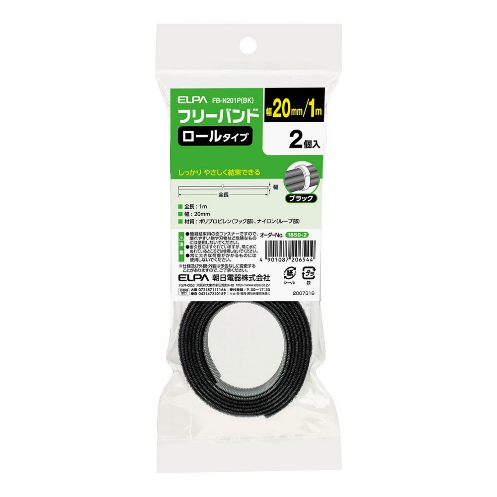 エルパ(ELPA) フリーバンド 20mm× 1m ブラック 2本入り FB-N201P(BK)
