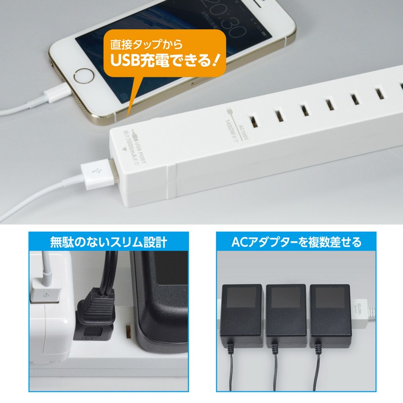 ●パソコンを立ち上げなくても機器の充電ができるUSBポートを搭載