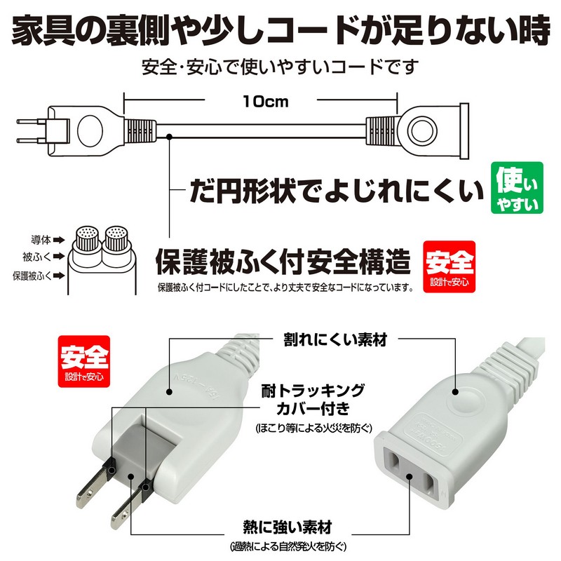 ●家具などで壁のコンセントとの隙間が狭い時に便利です。