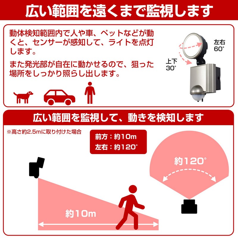 ●センサーが検知し点灯を開始する周囲の明るさを調整可能