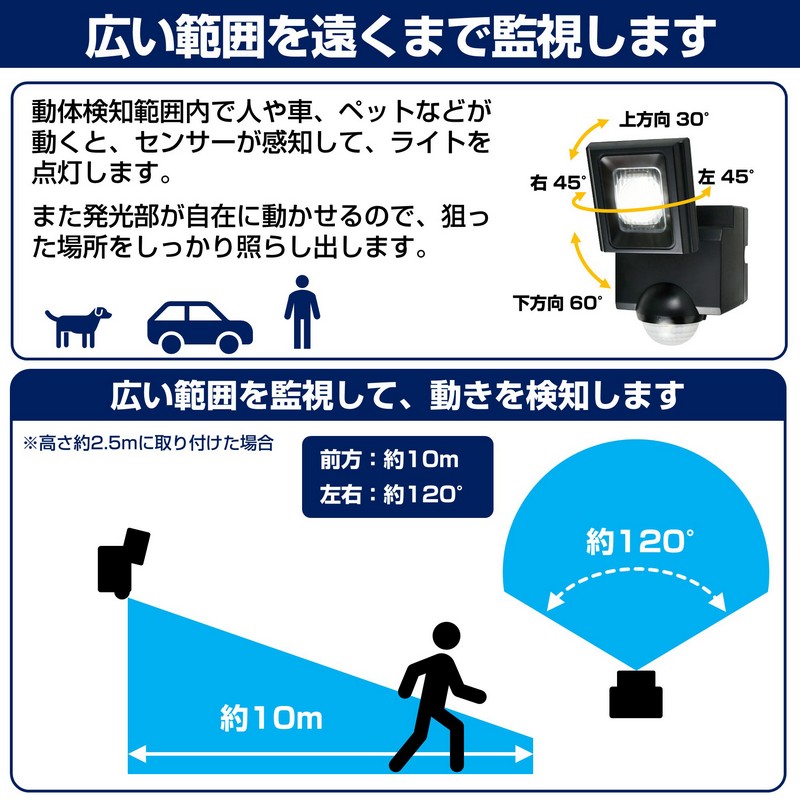 ●暗闇でセンサーが人や車の動きを検知して自動点灯