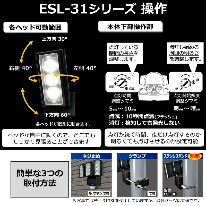 ●センサーが検知し点灯を開始する周囲の明るさを調整可能