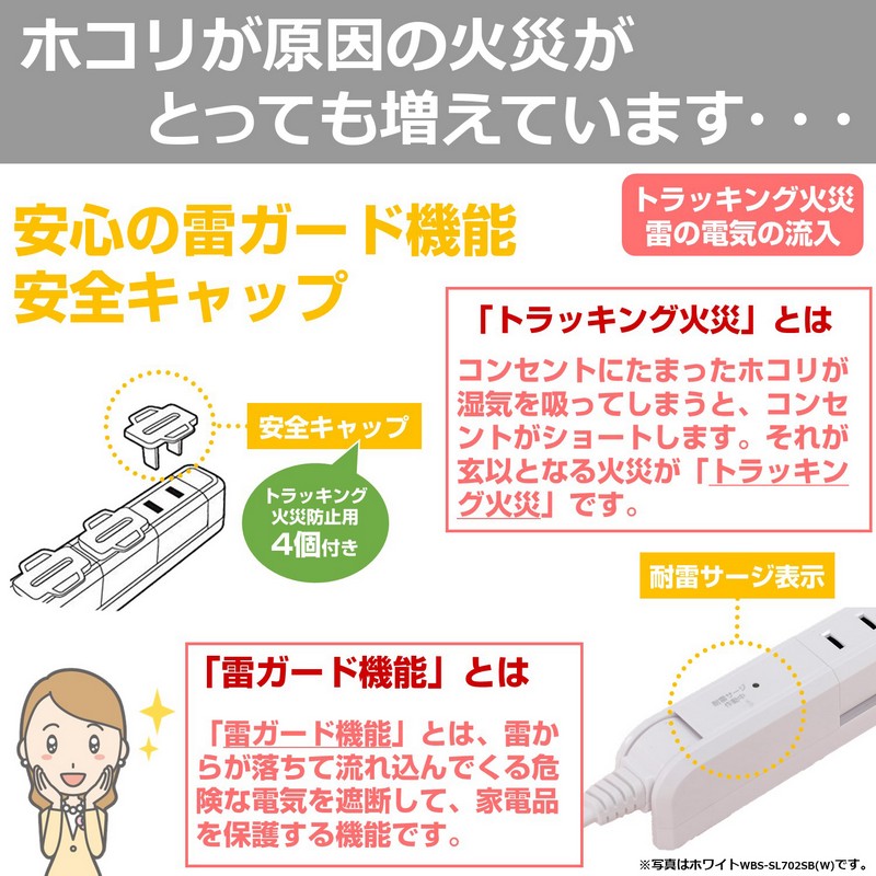 エルパ(ELPA) スリム回転タップ 雷ガード AC7個口 コード長 2m ウッド WBS-SL702SB(WD)