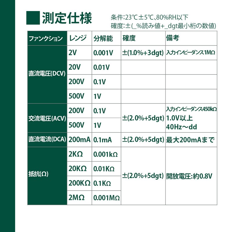 ■直流電圧:2/20/200/500V