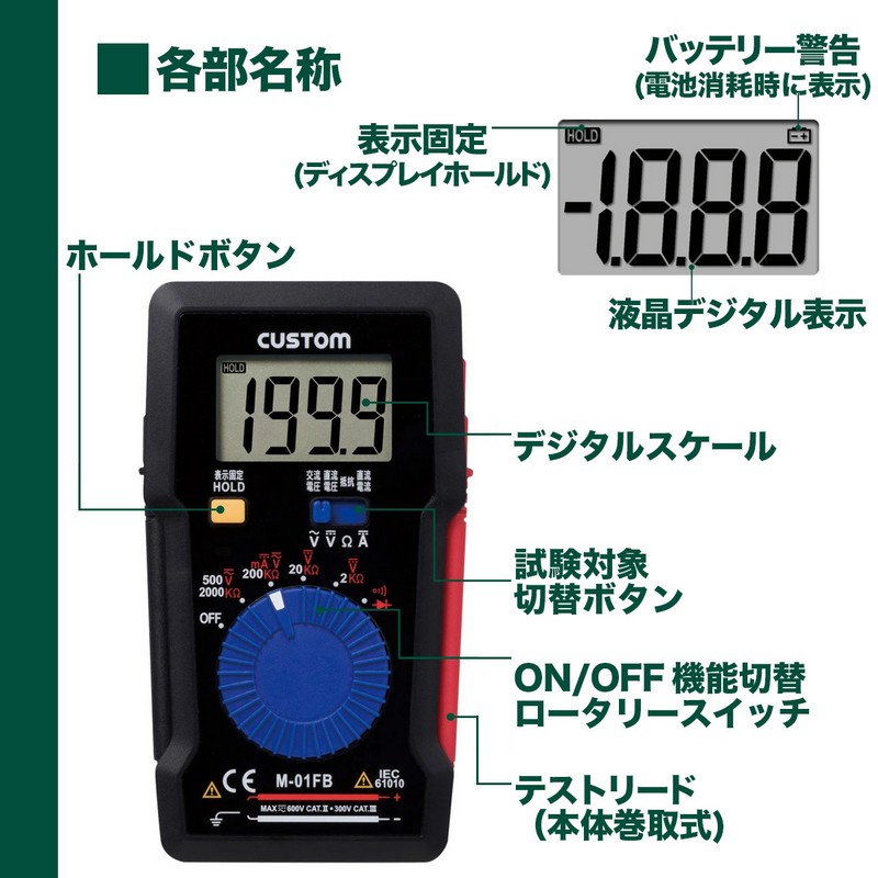 ●本体横にテストリード収納可能。