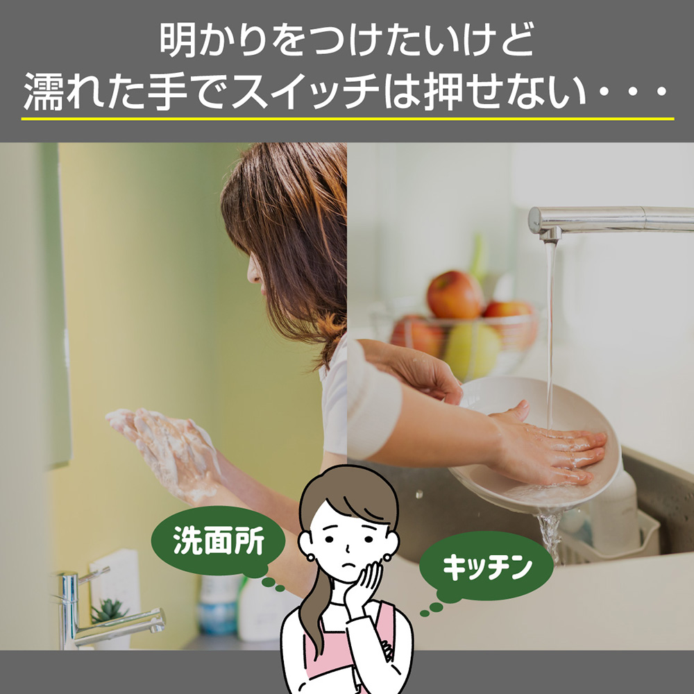 ●非接触スイッチに手をサッとかざすだけで電源をON/OFF、手をかざし続けると最大(100%)~最小(約10%)の間で無段階調光できる。