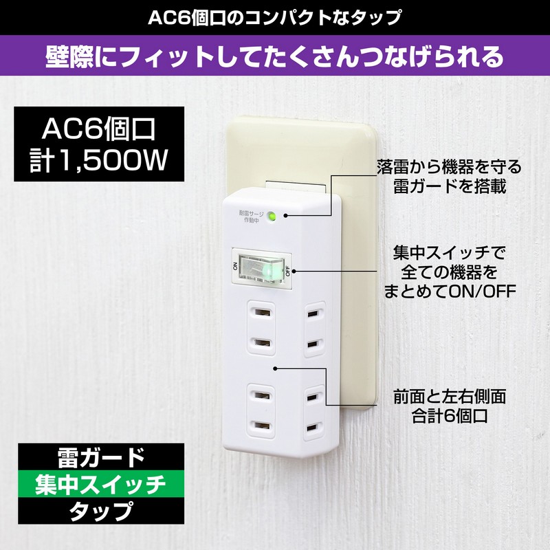 ●集中スイッチをON/OFFすることにより全ての差込口の電源をまとめて入/切できます。