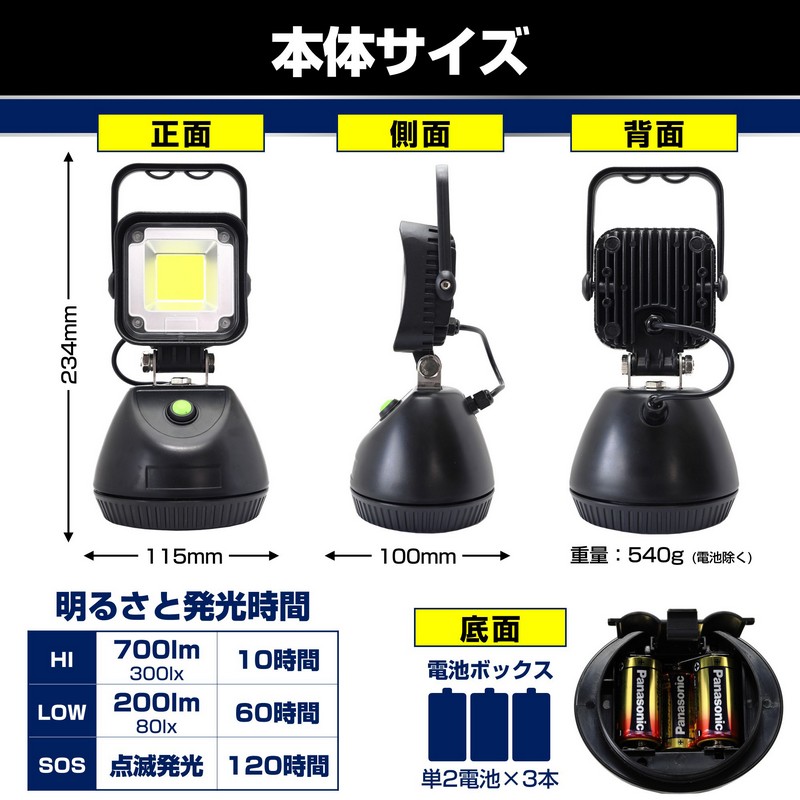 ■連続点灯時間:HI 約10時間/LOW 約60時間/SOS点滅 約120時間