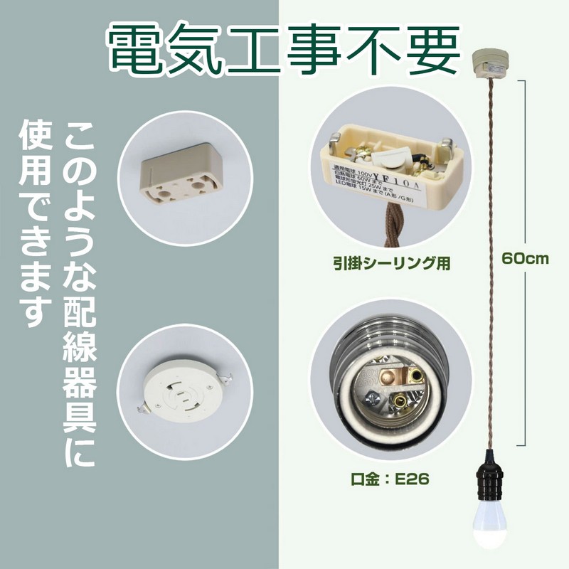 ■適合ランプ:白熱電球60Wまで/電球形蛍光灯25Wまで/LED電球15Wまで(A形・G形)