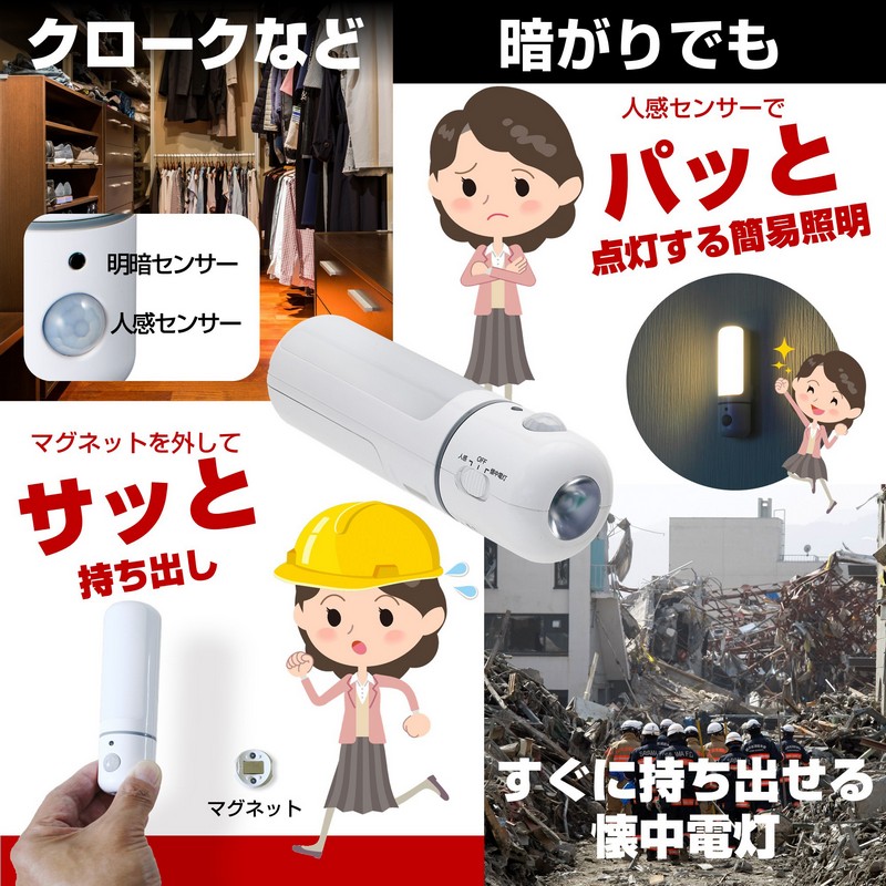 ■電池寿命:センサーモード/約8ヶ月(1日10回点灯時) 懐中電灯モード/約8時間