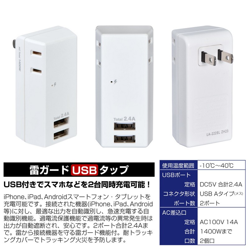 ●iPhone、iPad、Androidスマートフォン/タブレットを充電可能です。