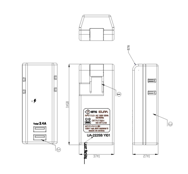 ■定格:DC5V 最大2.4A(2ポート合計)