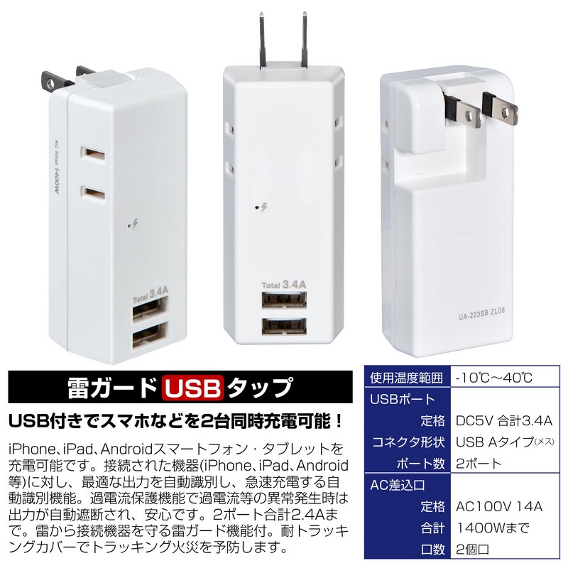 ●スマートフォンとタブレットを2台同時充電可能!(USBポート)