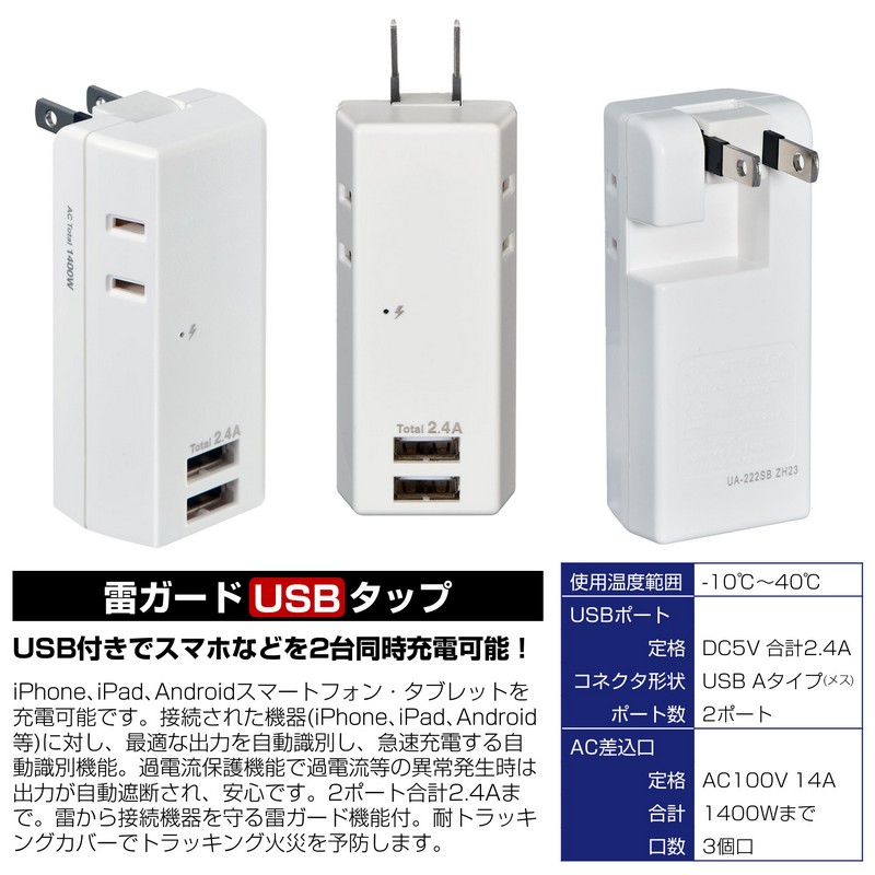 ●スマートフォンを2台同時充電可能!(USBポート)