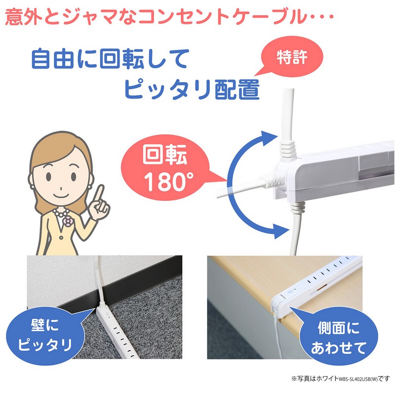 ●コードが上下180°に回転、ラックや壁面に沿わせてスッキリと配線