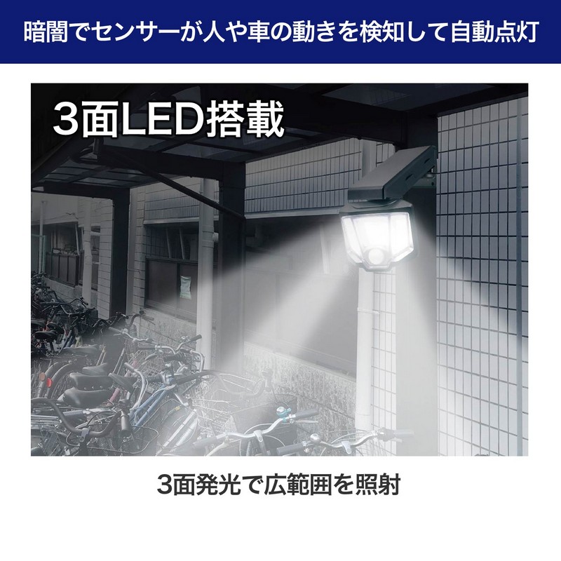 ●暗闇でセンサーが人や車の動きを検知して自動点灯