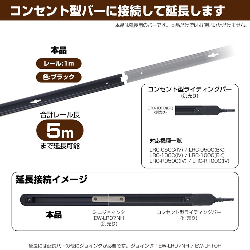 ●本品は単品ではご使用いただけません。必ず当社「ライティングバー(コンセント用)」と組み合わせてご使用ください。