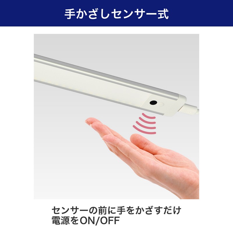 ●非接触スイッチに手をかざすだけで電源をON/OFF、手をかざし続けると、明るさ最大(100%)~最小(約10%)の間で無段階調光できます。