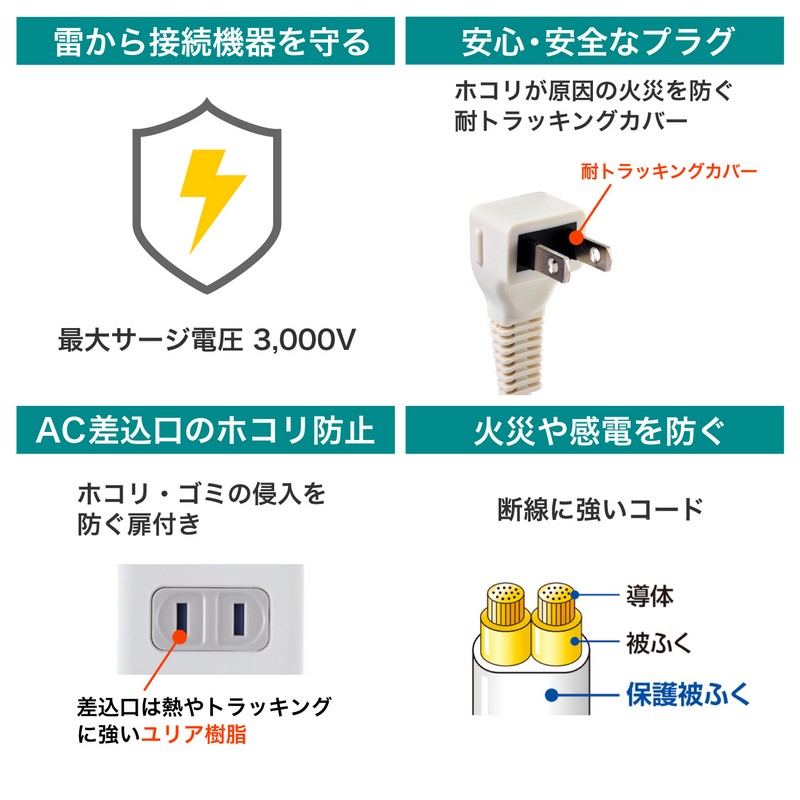 ●AC差込口にはホコリ・ゴミの侵入を防ぐ扉付です。