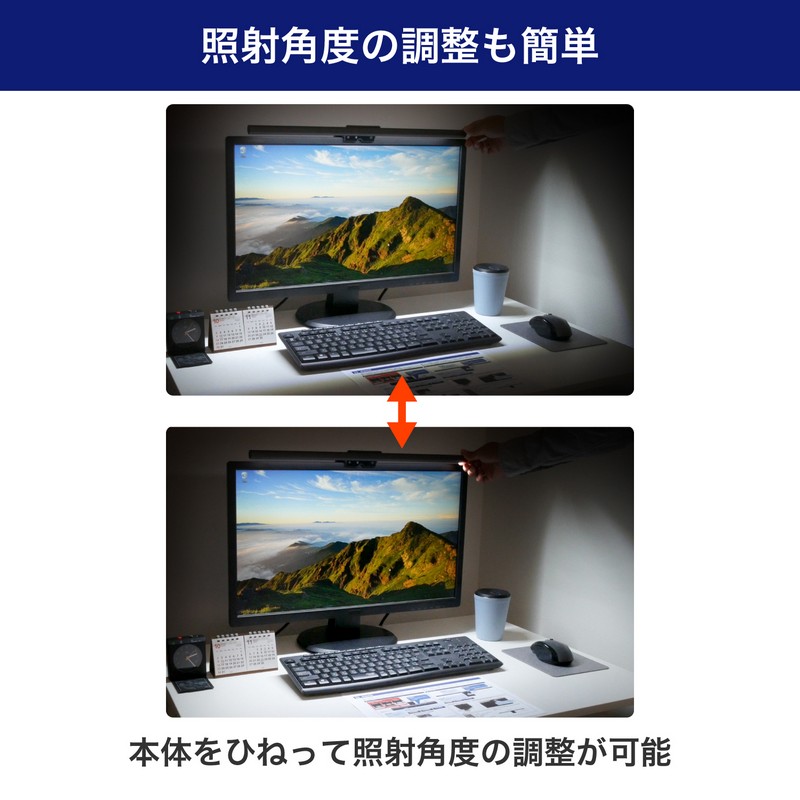 ●モニターの写り込み反射防止、モニター画面を直接照らさないから目が疲れにくい