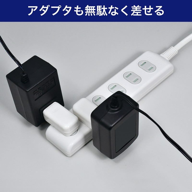 ●プラグの向きを横方向に変えることで、コードを真横に配線できます