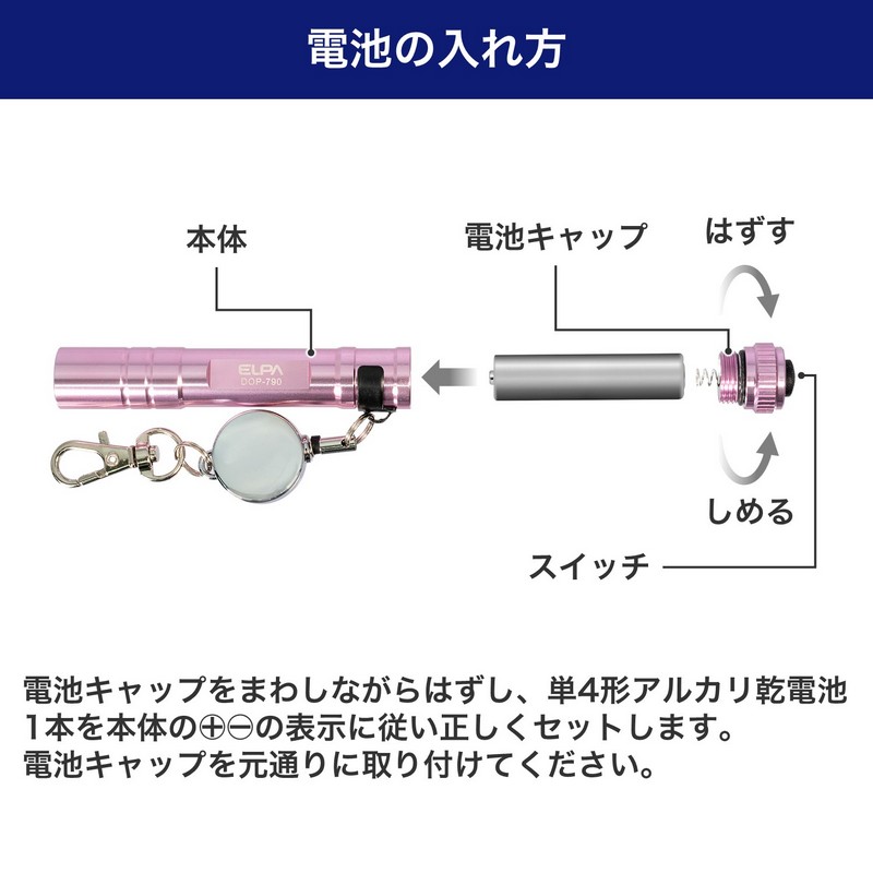 ●電池1本で点灯し、コンパクトで携帯に便利なサイズ