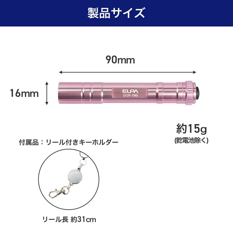 ■外形寸法(約):直径16×全長90(mm)(リール付キーホルダー除く、最大値)