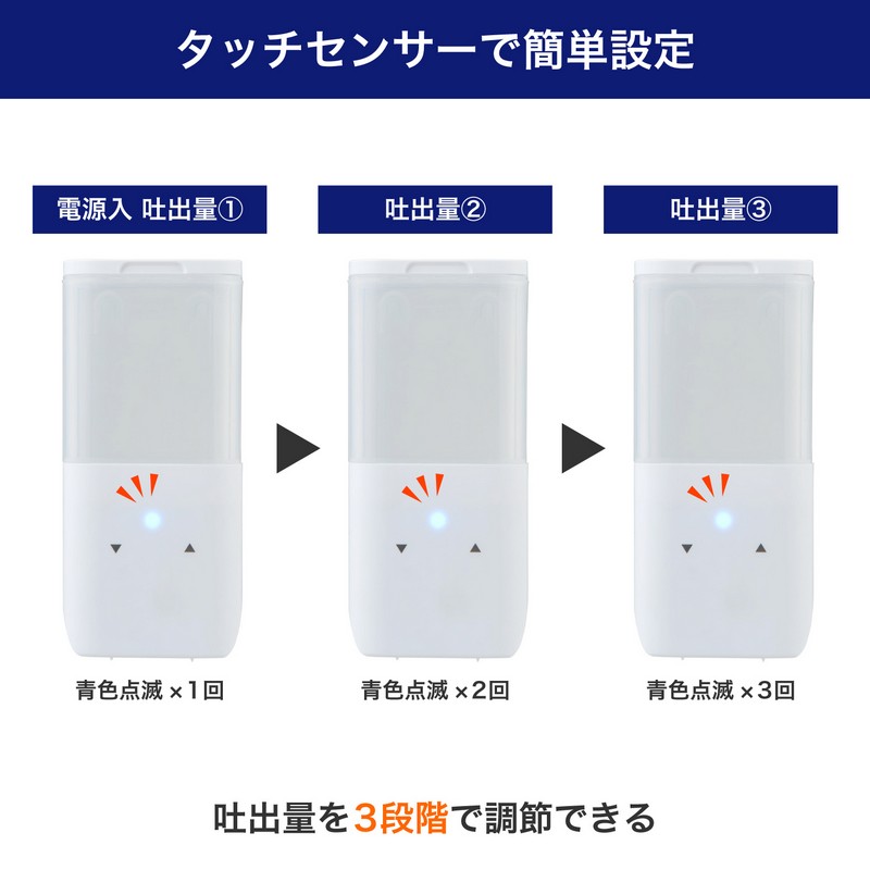 ●電源スイッチに軽く触れるだけでON/OFFや吐出量の調整ができるタッチセンサー