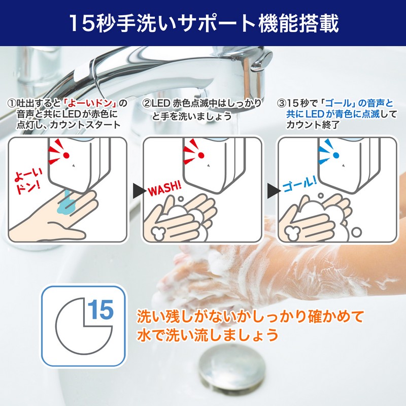 ●15秒間音声と光でお知らせする手洗いサポーター機能