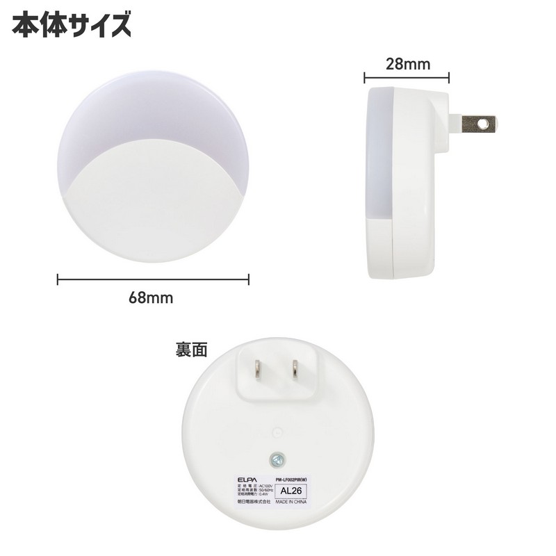 ■外形寸法(約):直径68×厚さ28(mm)(プラグ部除く)