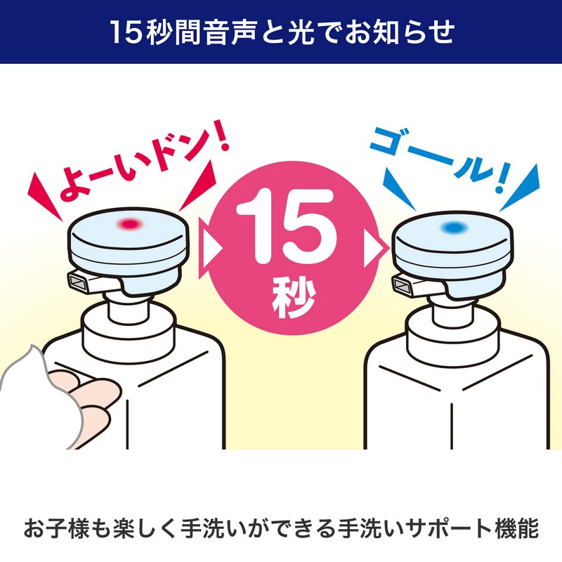 ●15秒間音声と光でお知らせしお子様も楽しく手洗いができる手洗いサポート機能